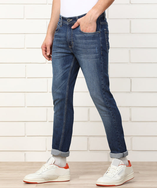 Slim Men Light Blue Jeans Dark Blue Knee slit