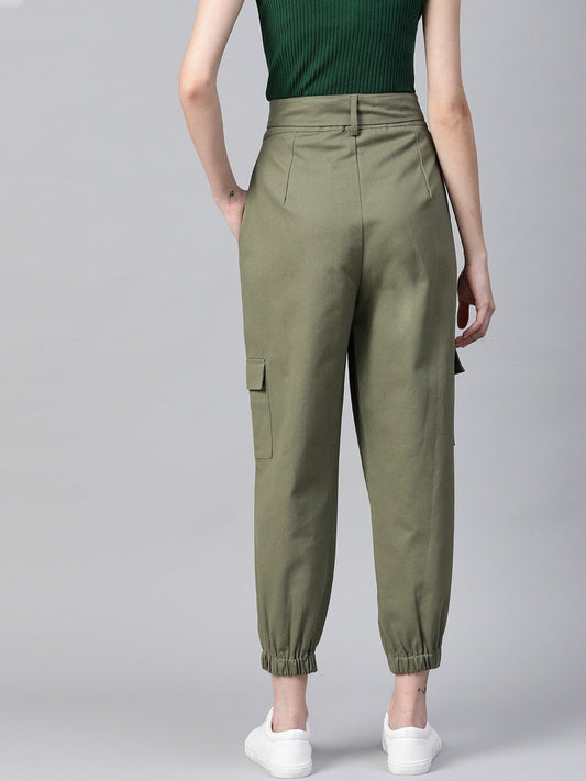Regular Fit Women Green Trousers