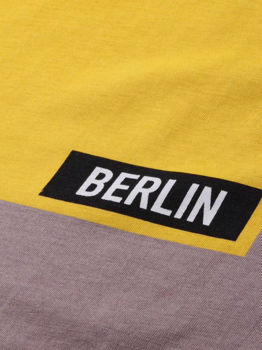 Striped Men Round Neck Yellow T-Shirt Black-Beige-White