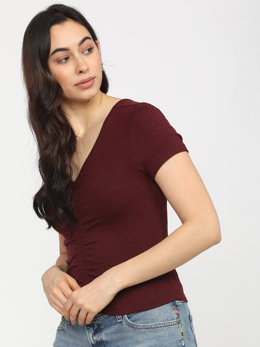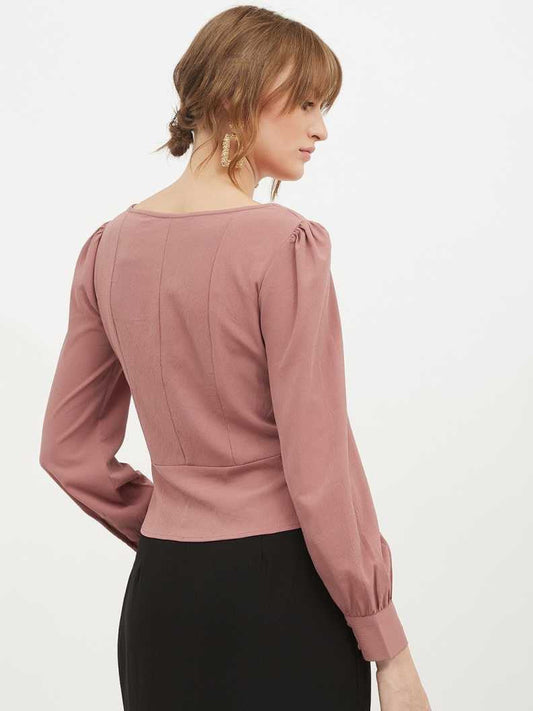 Casual Roll-up Sleeve Solid Women Pink Top Pink