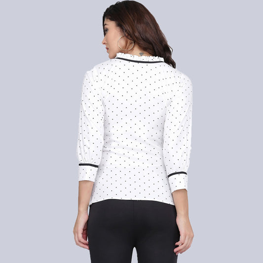 Casual Cuffed Sleeve Printed Women White, Black Top
