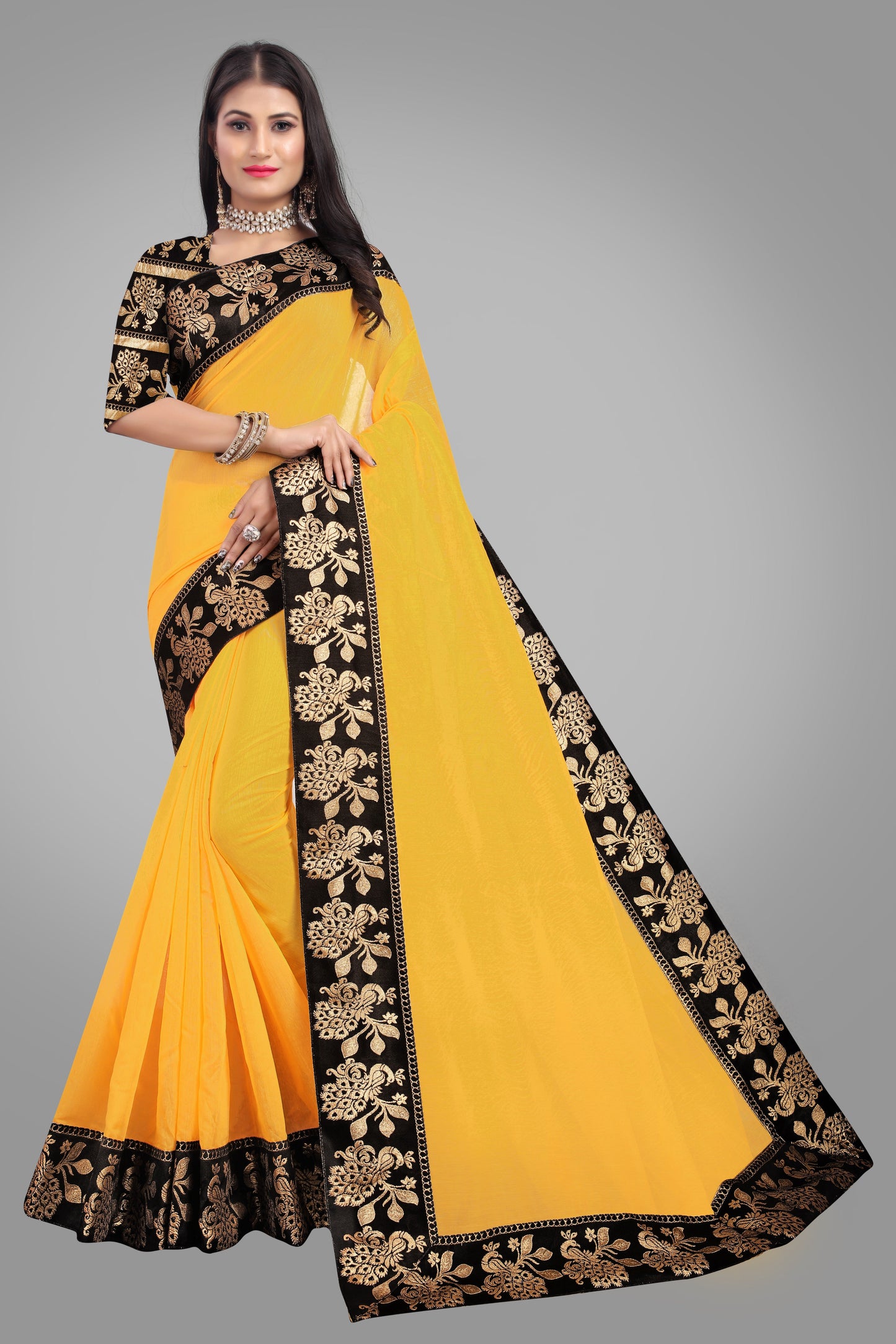 Chanderi cotton saree with Jacquard Zari border with same matching colour blouse peace.