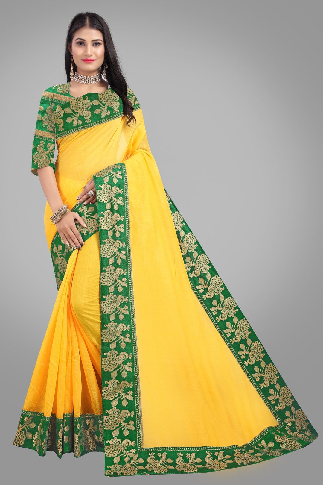 Solid, Woven Daily Wear Cotton Blend Saree green yellow