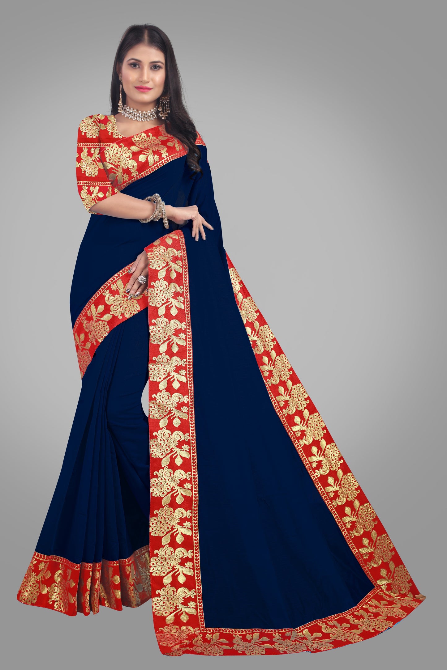 Solid, Woven Daily Wear Cotton Blend Saree red blue