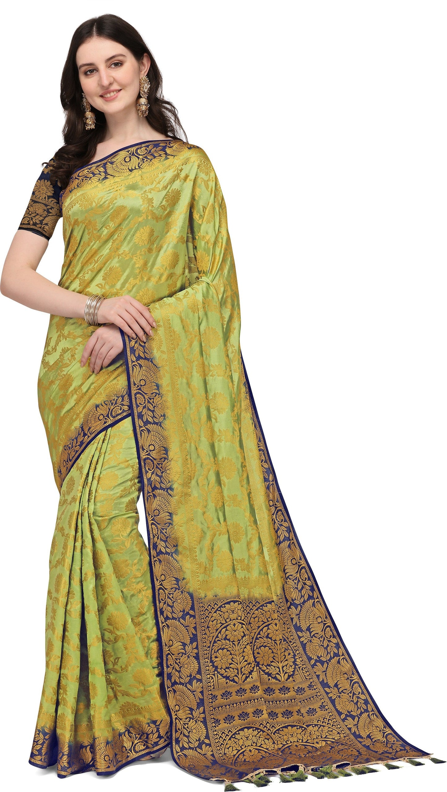 Woven Banarasi Cotton Silk Saree Pista - Navy